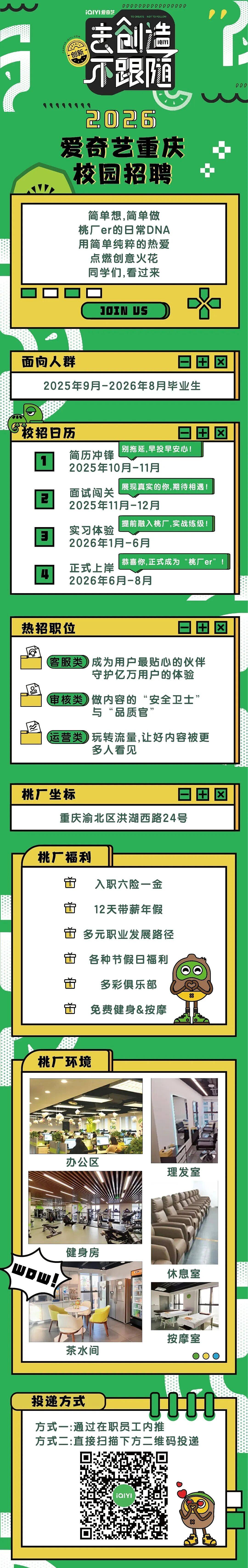 秋招 爱奇艺重庆2026校园招聘正式启动啦! 发布时间:2025-10-13 10:25:40
