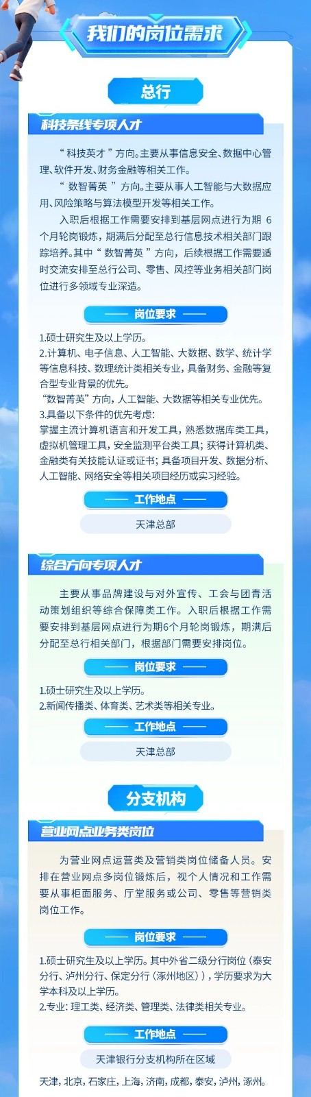 职位:科技条线专项人才|综合方向专项人才|分支机构营业网点业务类岗位