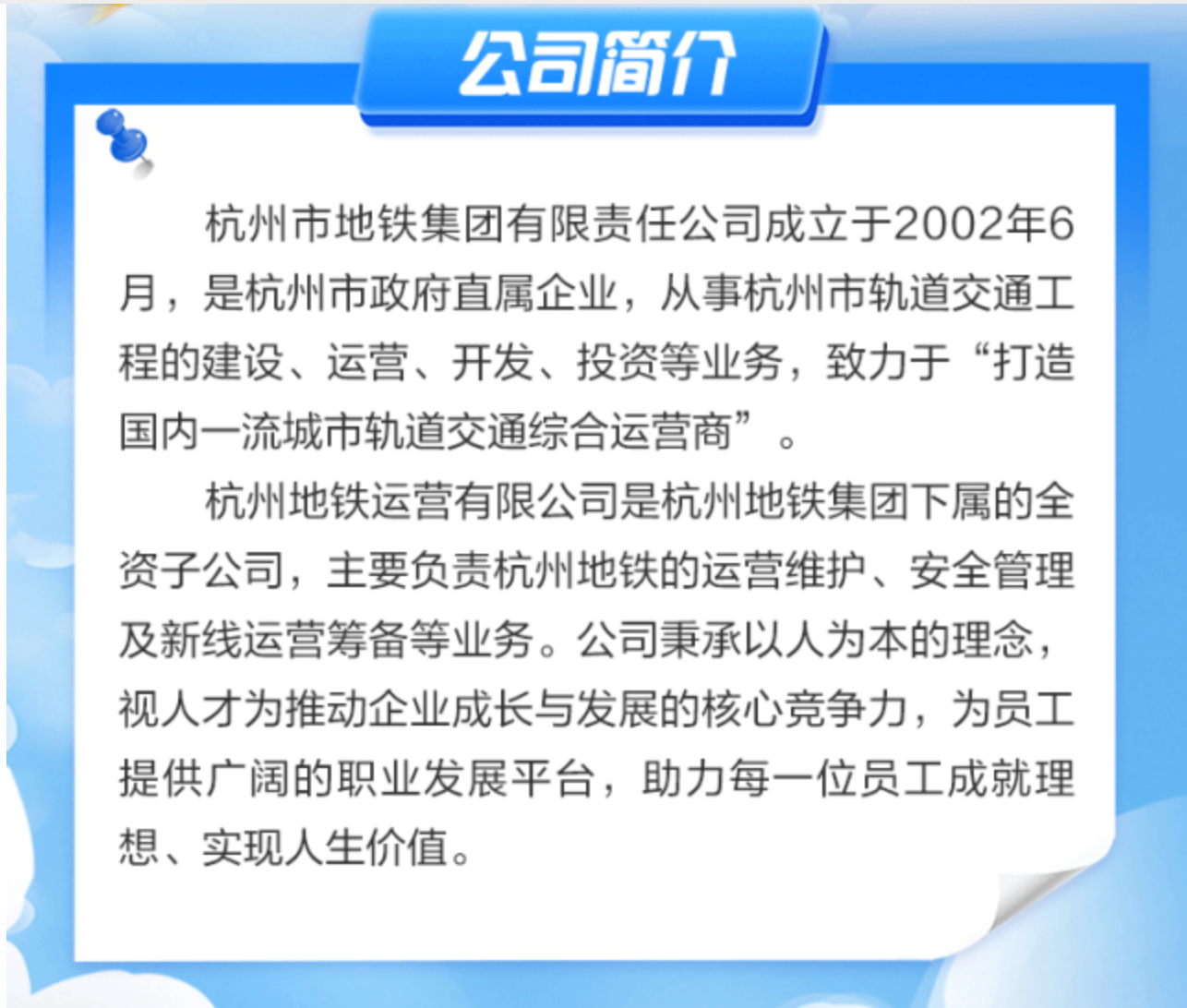 单位名称:杭州地铁运营有限公司2026届校园招聘