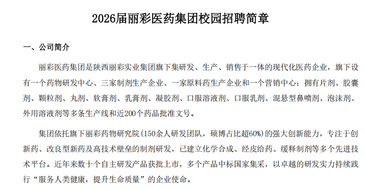 标题 陕西丽彩药业有限公司招聘 招聘截止日期 2026-07-31