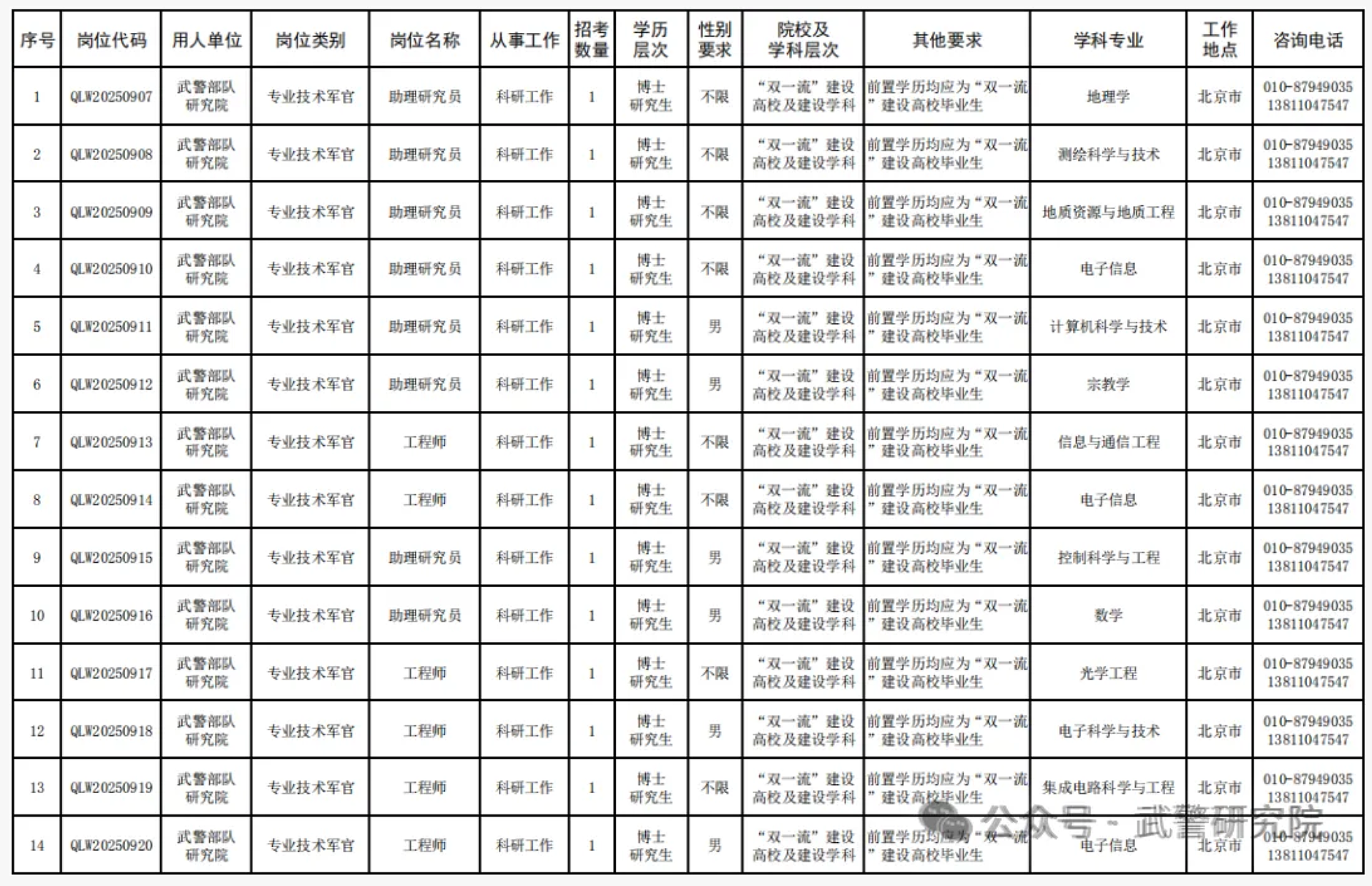 nn根据《现役军官管理暂行条例》、《现役军官选拔补充暂行规定》等有关政策,按照武警部队统一部署,2025年第二批次武警部队研究院直接选拔招录警官工作将全面展开。现就有关事项公告如下: nnnnnnnn
