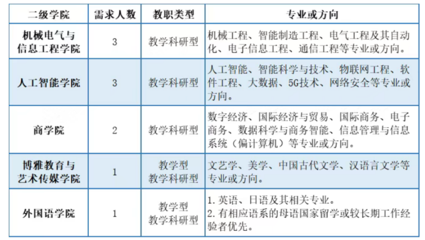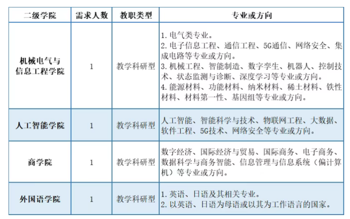 10.具有高校教育教学、科研院所、企业行业、部队等工作经验的,具有台港澳、海外留学或访学教育背景的,外籍教师能用中文流畅教学和交流的,均优先考虑。
