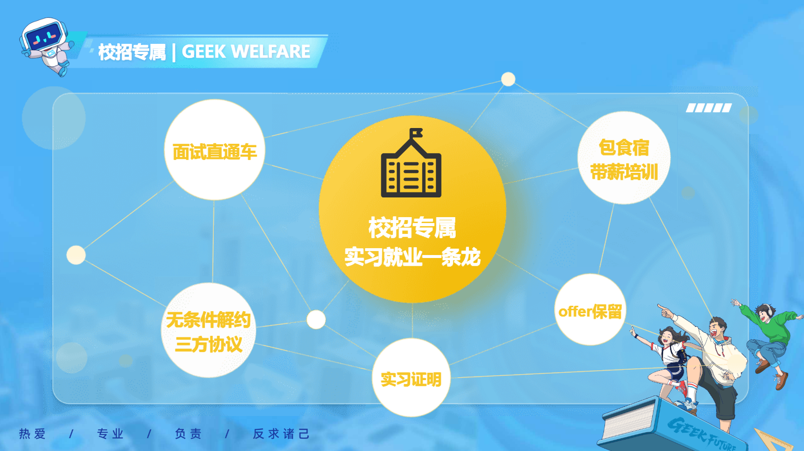 3、走成长快车道:通过2年系统培养认证为 极客教练 ,从潜力新人快速进阶为领域标杆;