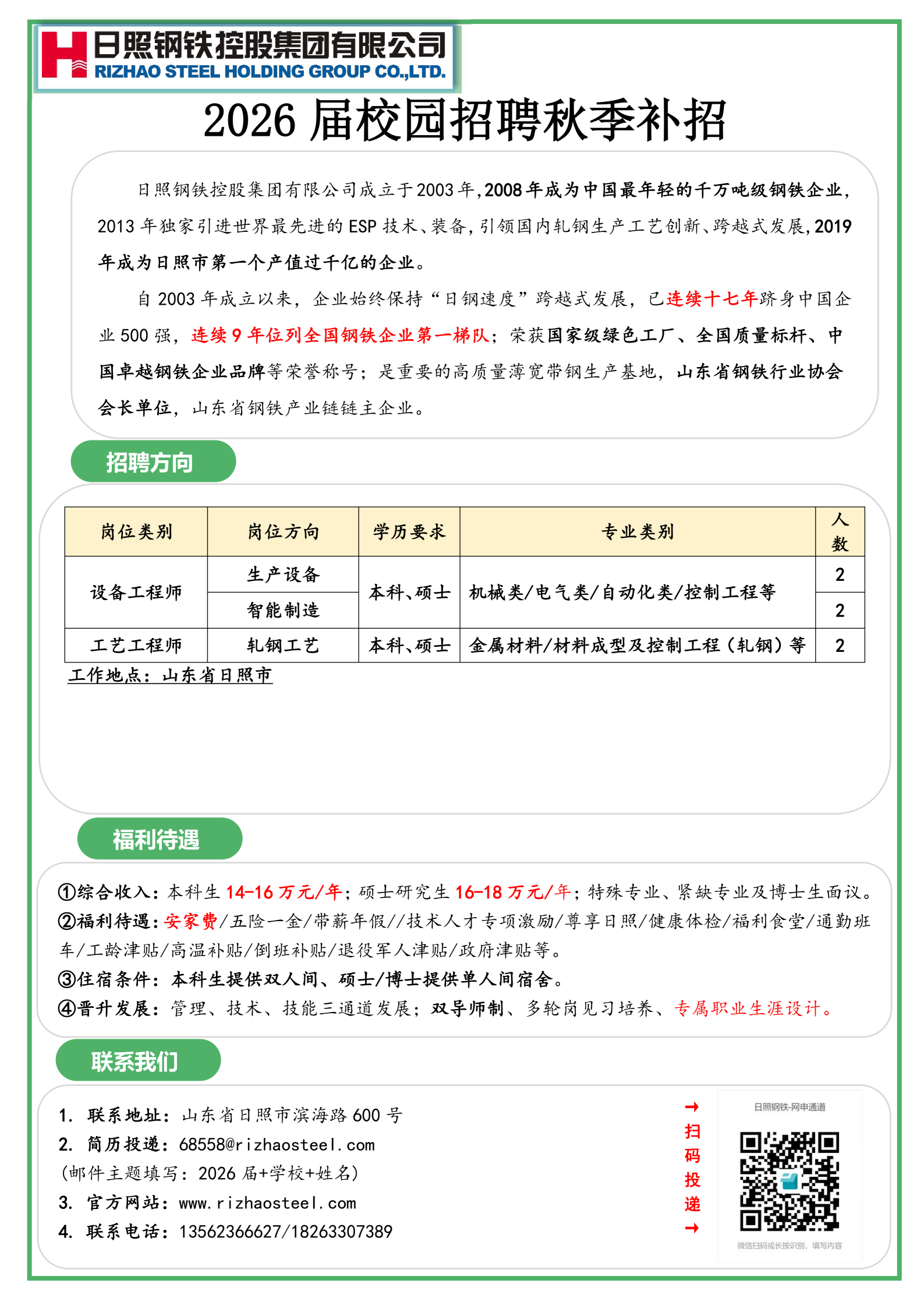 日照钢铁控股集团有限公司2026校园招聘-秋季补招