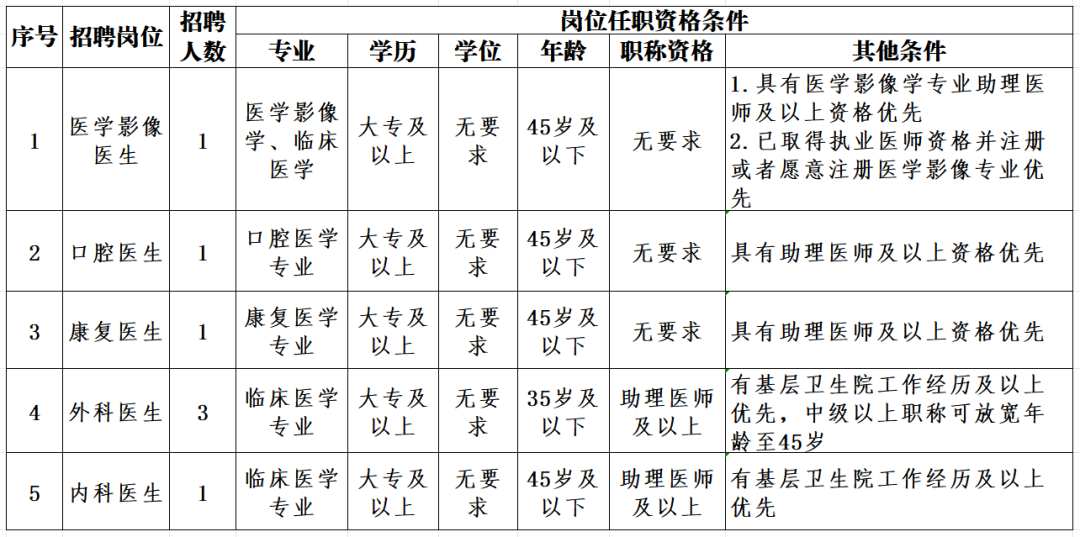 根据医院业务发展需求,现向社会公开招聘以下岗位人员,具体招聘事宜如下: