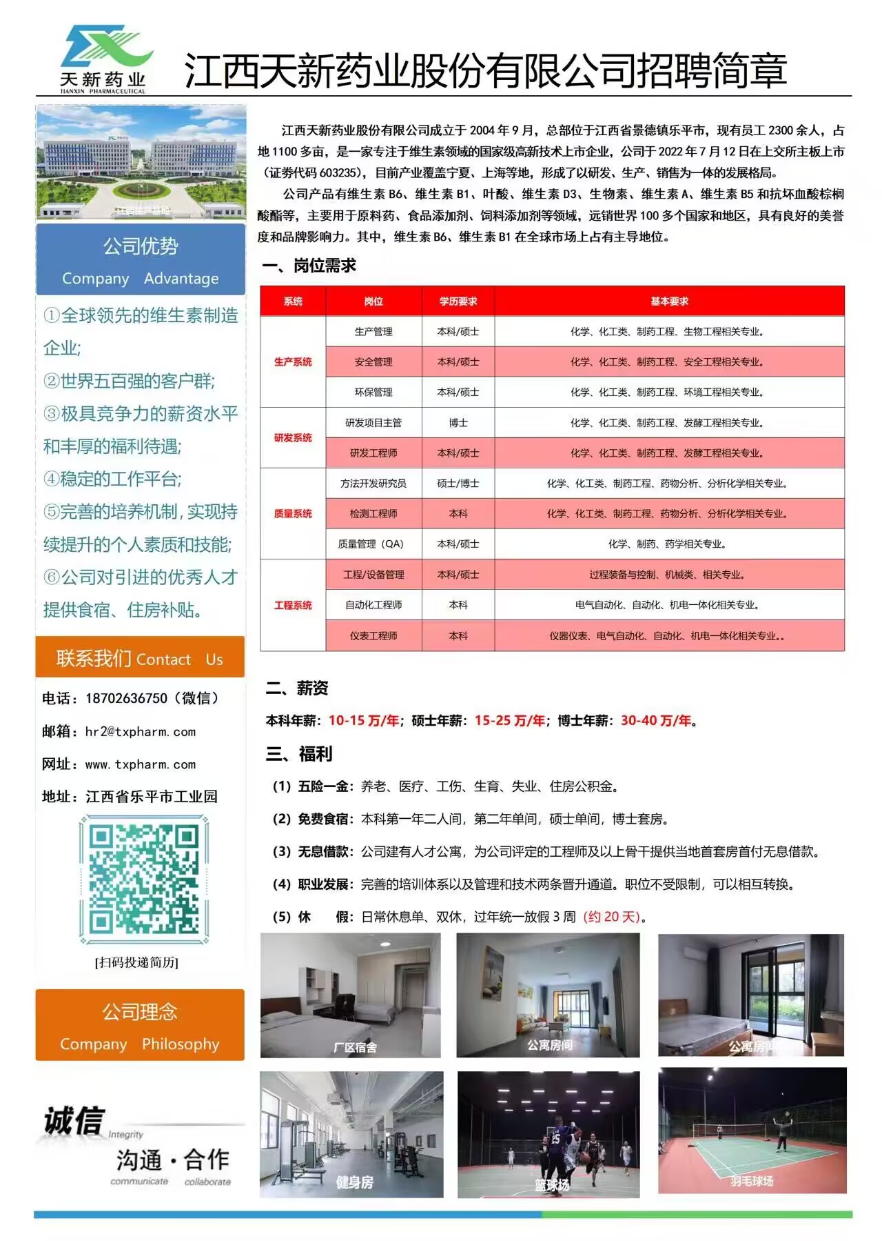 江西天新药业股份有限公司2026届校园招聘【成都理工大学站】
