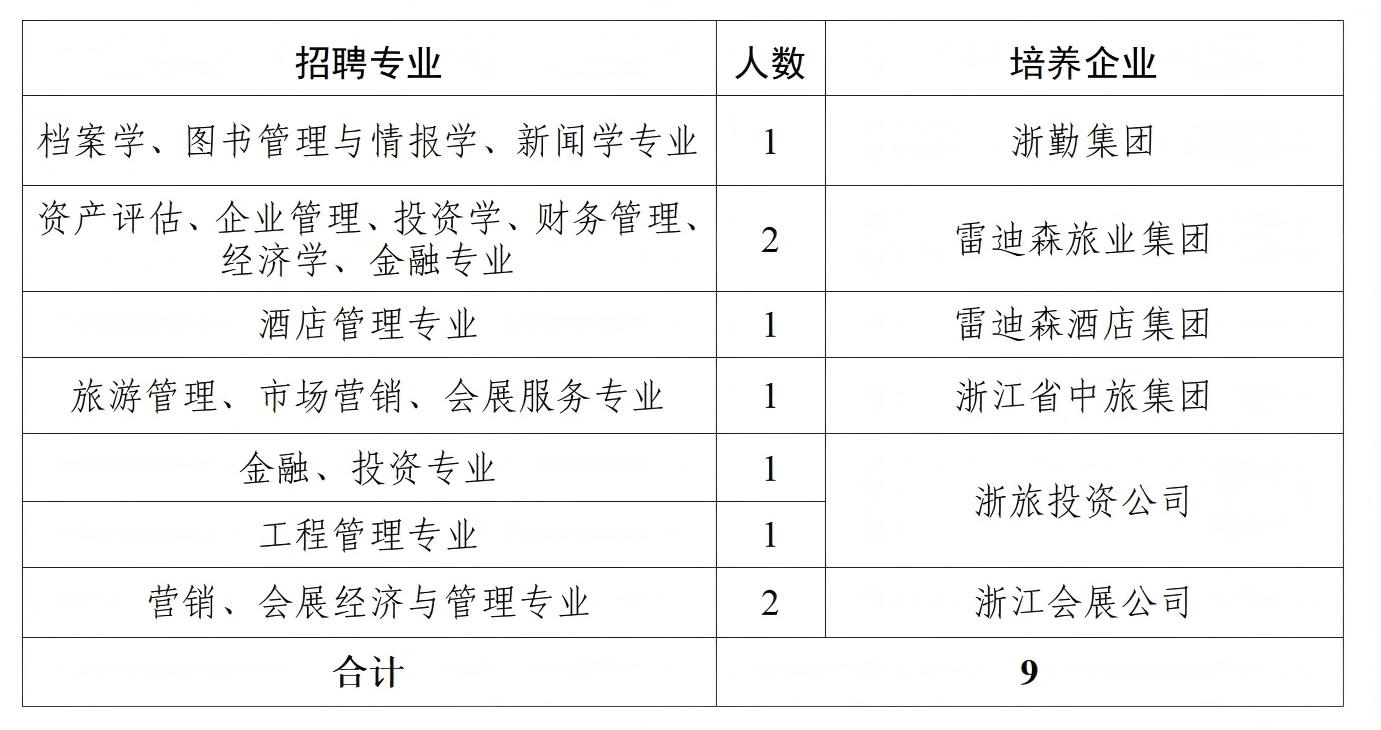 本公告未尽事宜浙江省旅游投资集团党委组织部(人力资源部)负责解释。