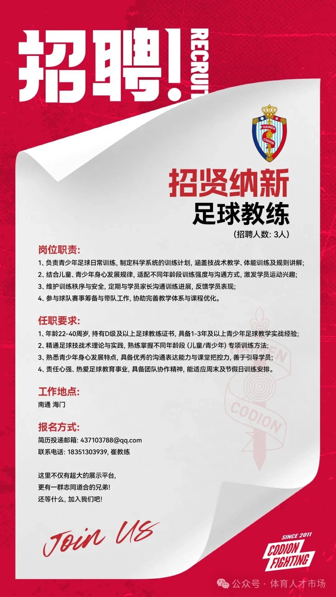 职位详情:足球教练 (2025.12.08)