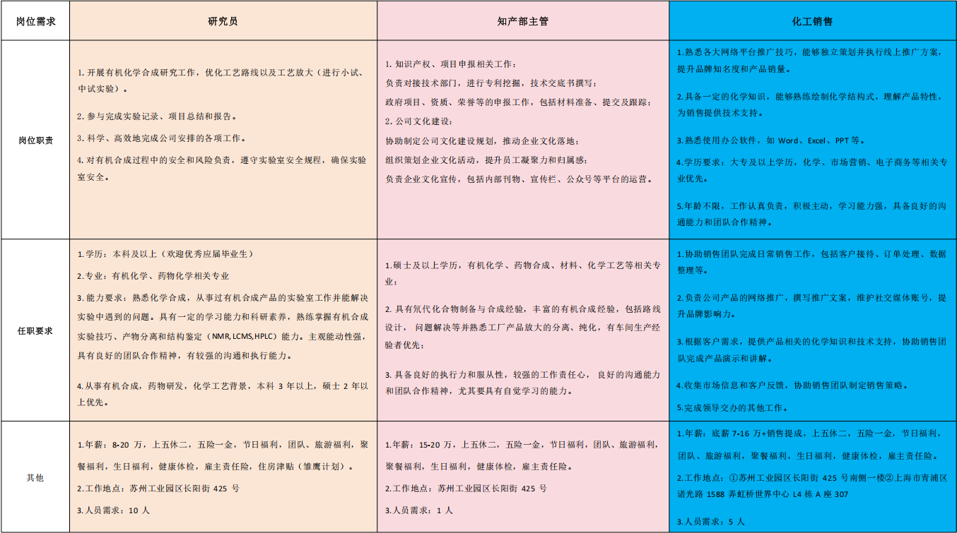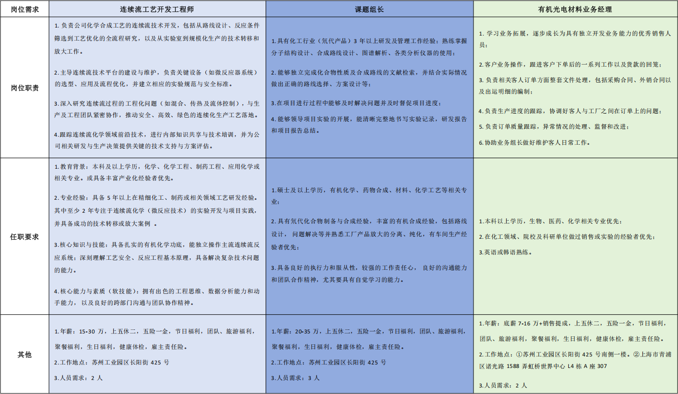 职位名称: 有机光电材料业务经理(化工销售)