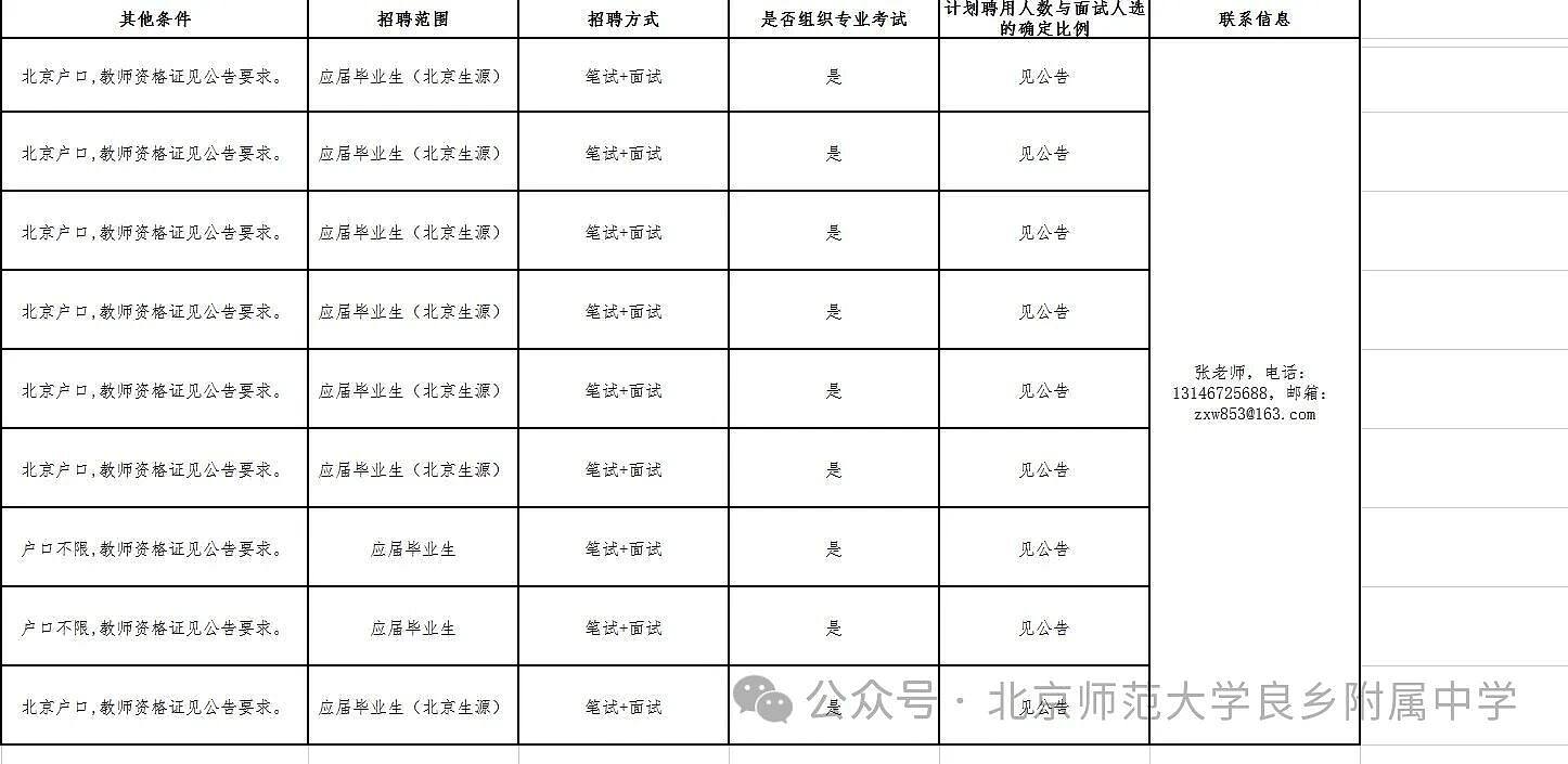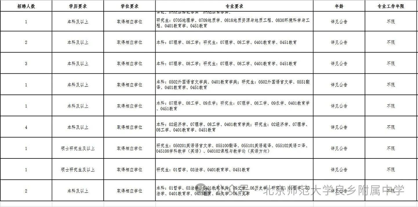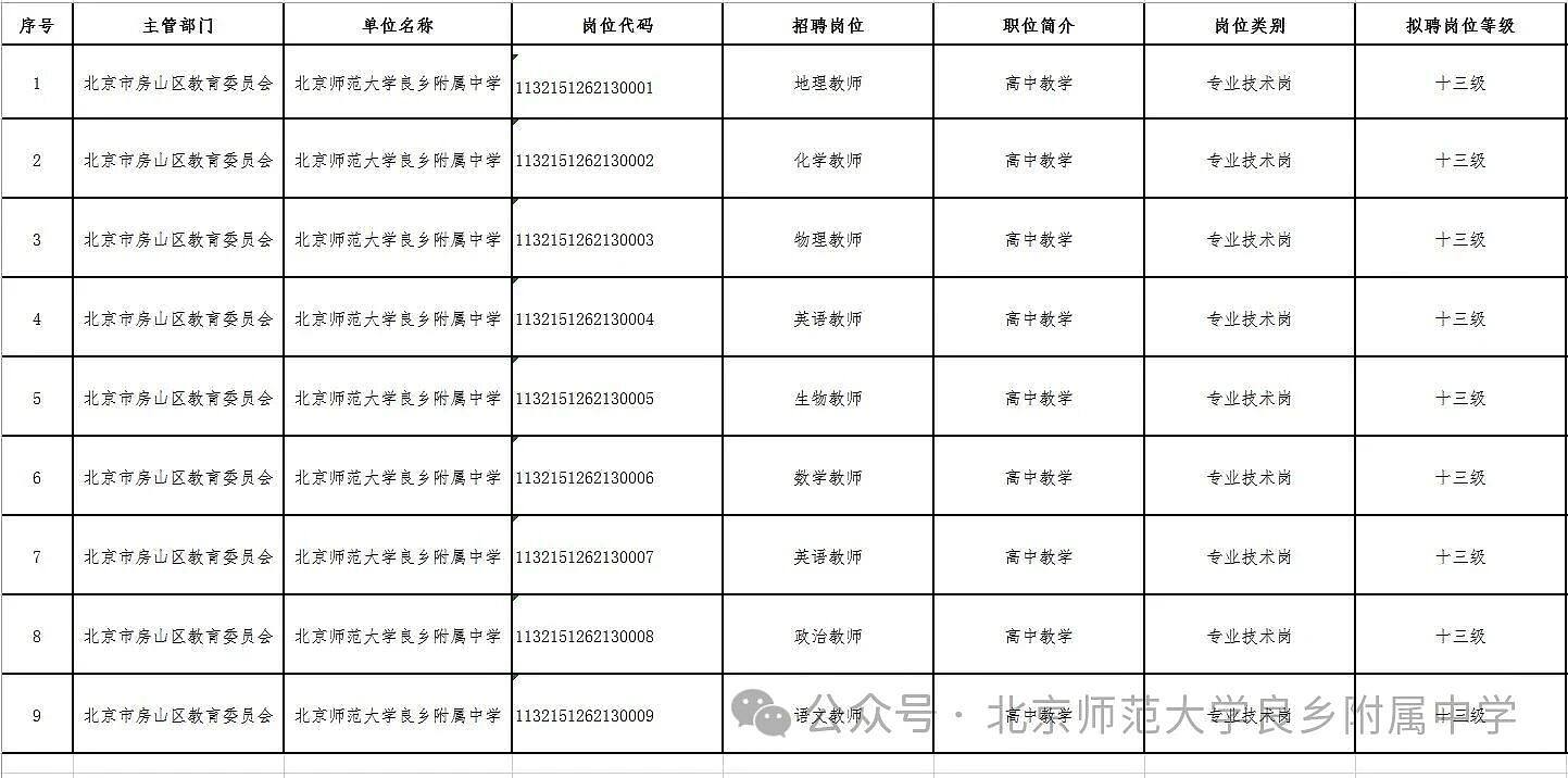 北京师范大学良乡附属中学2026年第一批招聘