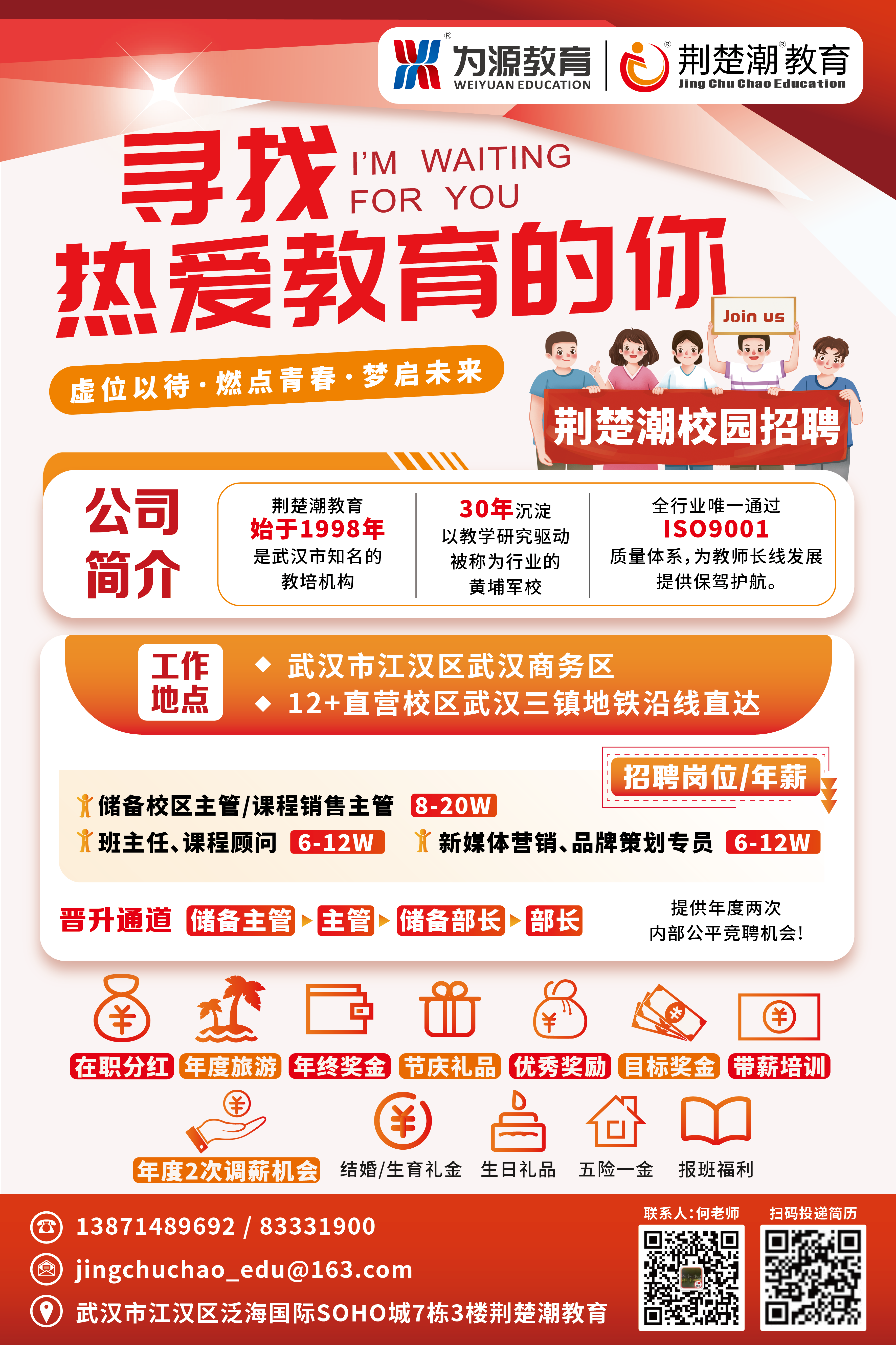 ??荆楚潮教育诚招:课程顾问/班主任/新媒体运营/品牌运营 湖北省为源教育投资有限公司