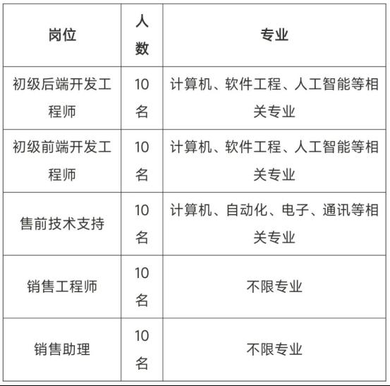职位:2026校园招聘初级后端开发工程师|初级前端开发工程师|售前技术支持|销售工程师|销售助理