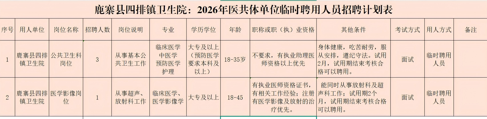 鹿寨县四排镇卫生院2026年公开招聘编外聘用人员公告正文