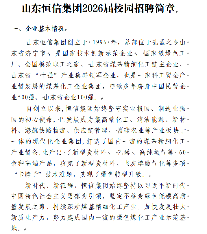 招聘职位:山东恒信集团2026年校园招聘