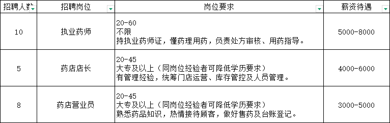 职位:2026招聘执业药师|药店店长|药店营业员