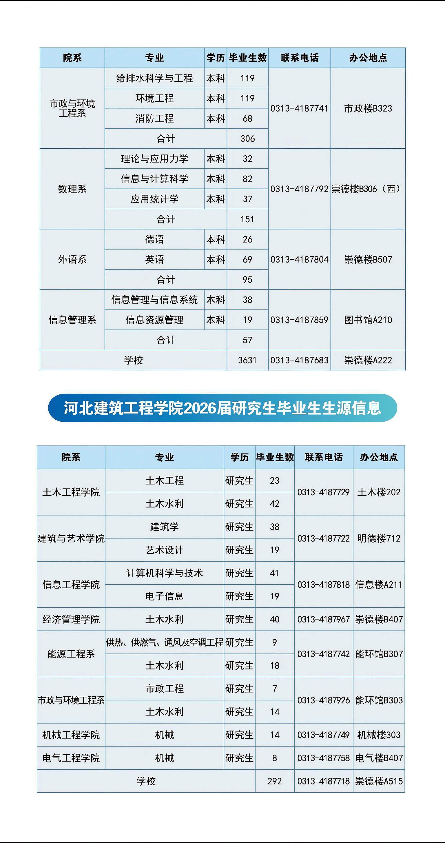 我校2026届预计毕业生3923名,其中本科毕业生3631名,硕士毕业生292名。分专业毕业生数和就业负责人联系方式详见下表: