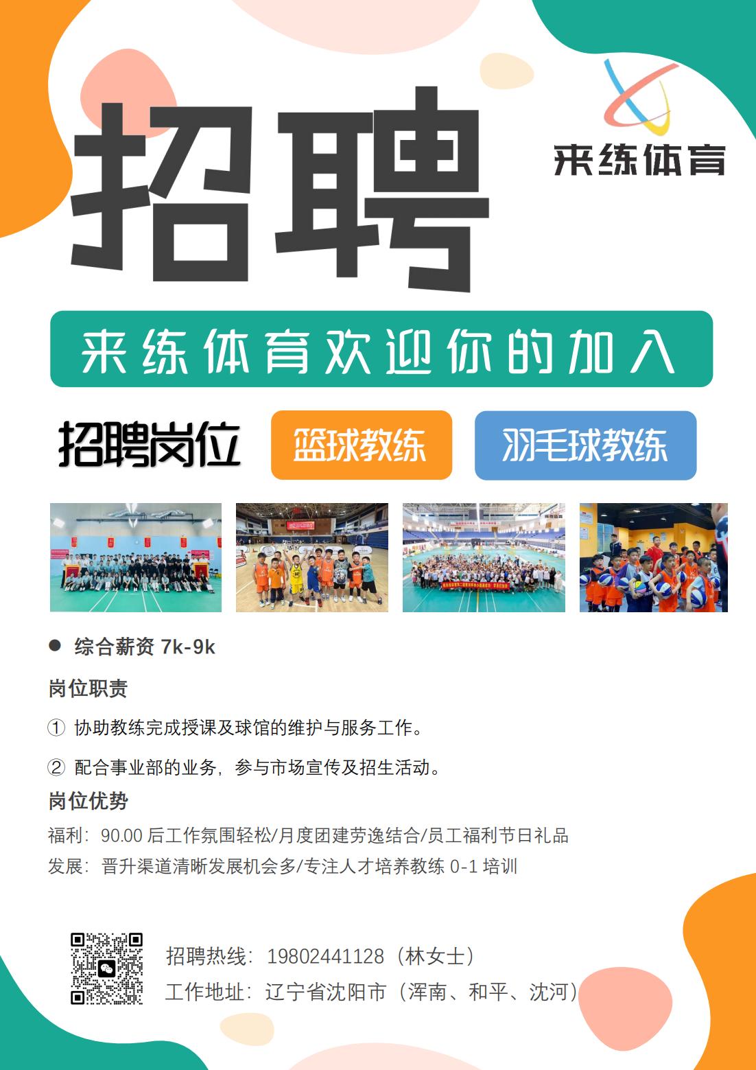 (沈阳)来练体育篮球羽毛球教练员征集中!