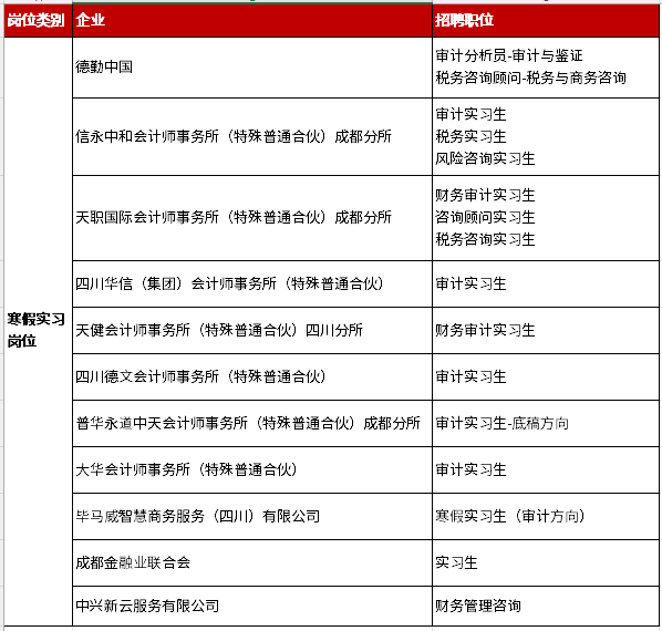 涵盖审计、税务、咨询、资金、财务管理等多个方向,寒假实习&校招岗位同步开放,超过1000+优质岗位等你来拿!