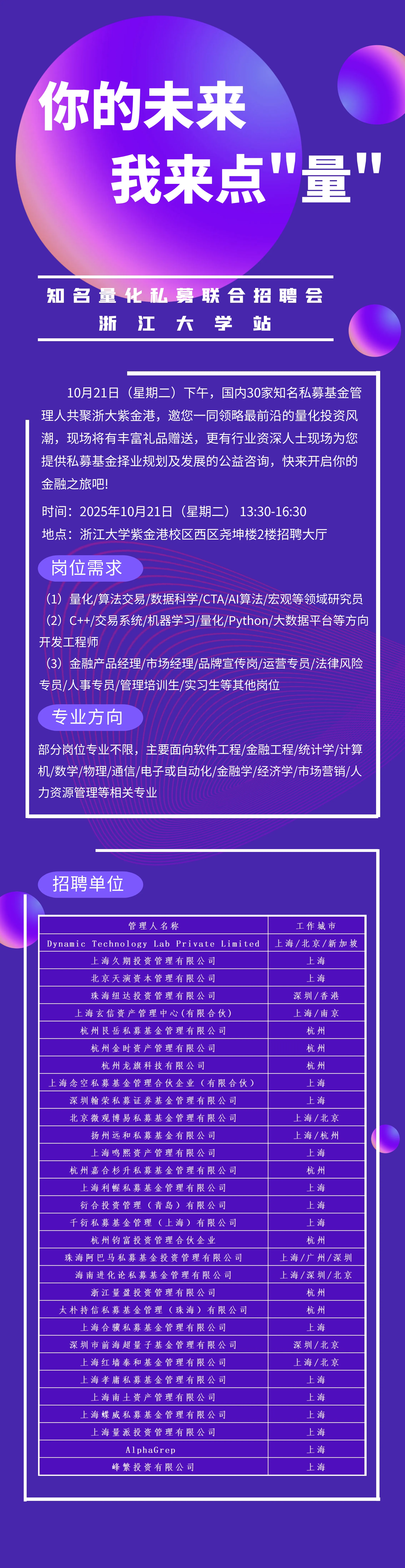你的未来 我来点“量”知名量化私募联合招聘会浙江大学站