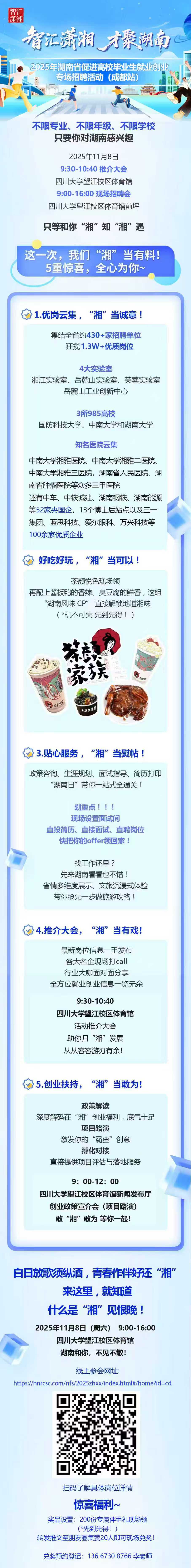 “”智汇潇湘 才聚湖南”2025年湖南省促进高校毕业生就业创业专场招聘活动(成都站)