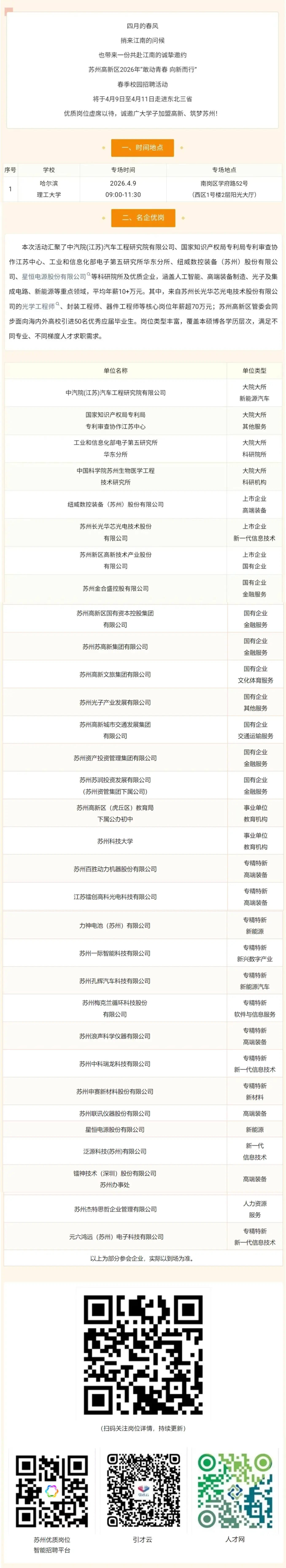 2026年苏州高新区春季校园招聘会——哈尔滨理工大学!我们来啦!